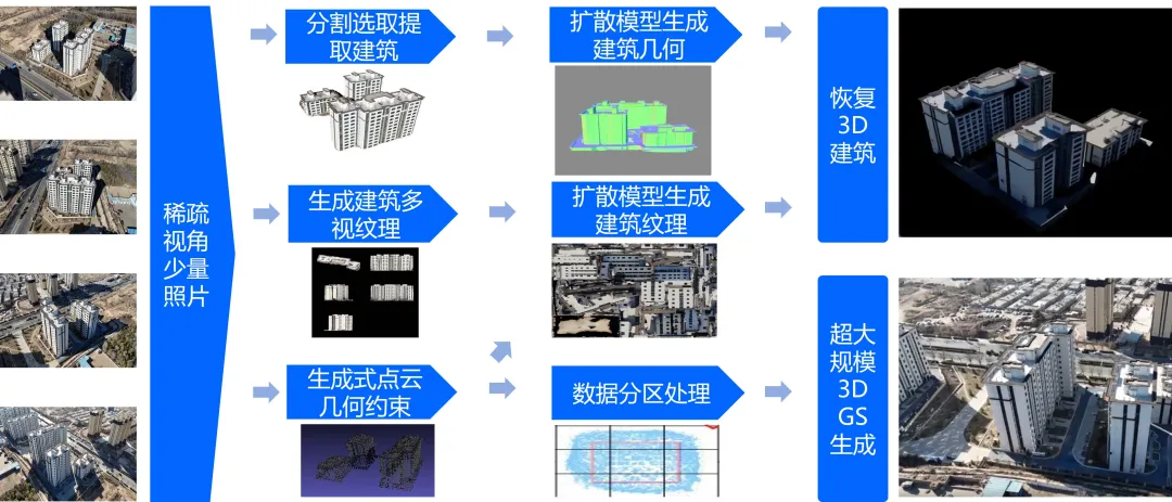 依托洛书时空基础大模型的自动化建模与学习能力,系统可智能识别并自动生成城市级实景三维模型。通过融合倾斜摄影、视频等多源数据,大模型能够自动分析并生成补全城市要素,仅需少量数据即可在小时级完成精细化三维重建,建模精度达厘米级,为城市规划、应急指挥等应用提供高可靠的三维数字底座。