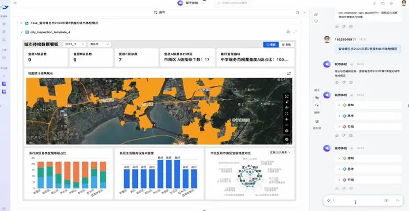 基于 “洛书” 时空智能大模型,构建 “指标 - 图谱 - 模型” 驱动的国土空间规划体检评估智能体。其具备 “指标体系构建 — 图谱实时监测 — 算法模型分析” 全链条智能化支撑能力,可自动生成体检评估报告与可视化看板,实现规划数据、分析算法、计算资源的一体化整合应用,为规划决策提供精准数据支撑。